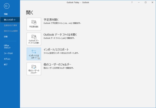 新しいパソコンにOutlookをインストールしたら、同様に「開く/エクスポート」から「インポート/エクスポート」を選ぶ。そしてこのときは「他のプログラムまたはファイルからのインポート」を選んで、古いパソコンから移したメールデータを選択してインポートする。